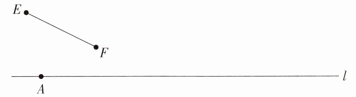 四、线段$AB$在直线$l$上,它的长度是$EF$的$3$倍,请你用圆规在直线$l$上找到点$B$。