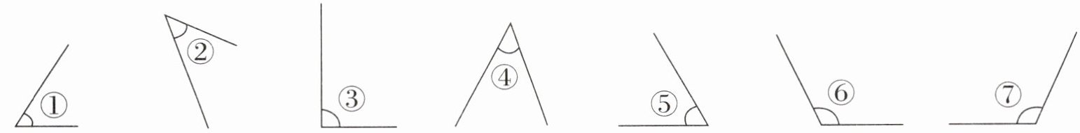 一、用三角尺上的直角比一比,下面哪些角是锐角,哪些角是直角,哪些角是钝角?(填序号)