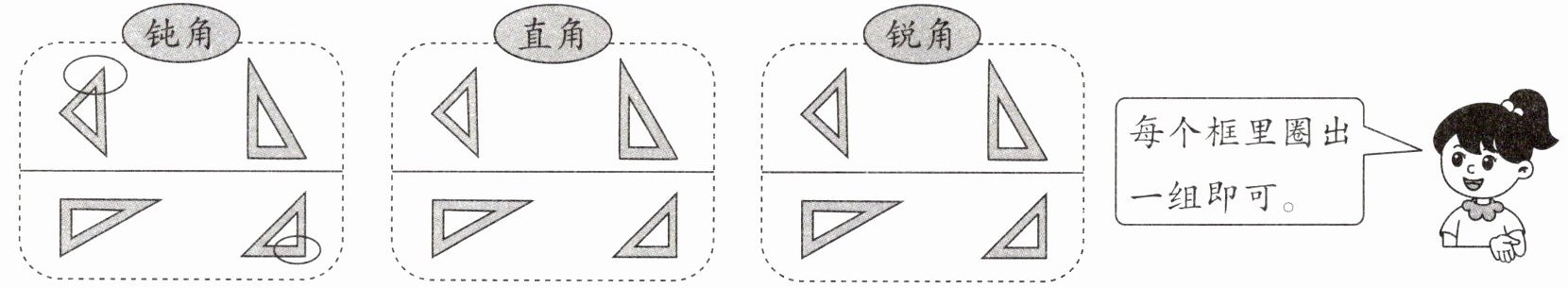 第三组框中圈出两个$30°$角(拼成$60°$锐角)。