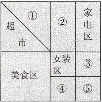 三、右面是某大型购物中心功能区分布图。各功能区分别占这个正方形平面图的几分之几?