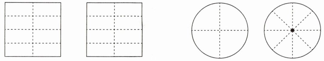 二、在下面图形中涂出一组分母相同、分子不同的分数,再按从大到小的顺序排列。
