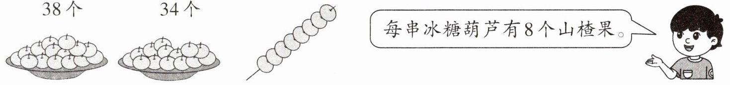 四、冰糖葫芦是中国特色食品。下面这两盘山楂一共可以做多少串冰糖葫芦?