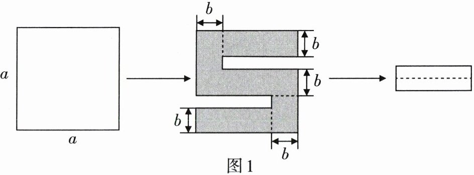 4. 如图1所示,将一个边长为$a$的正方形纸片剪去两个小长方形,得到一个“S”图案,再将剪下的两个小长方形拼成一个新的长方形,则新长方形的周长可表示为(
