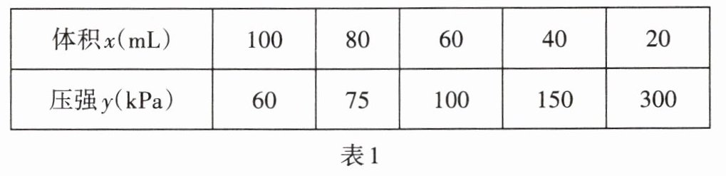 4. 在温度不变的条件下,气体的压强和气体体积对应数值如表1,则可以反映y与x之间的关系的式子是(