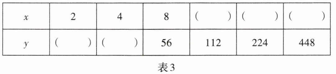 (2)已知表中的两个量x与y成反比例关系,请完成表3: