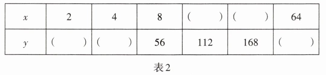 (1)已知表中的两个量x与y成正比例关系,请完成表2: