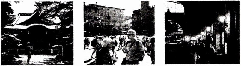 The people in the third picture are at a station (or an indoor public - place like a mall).