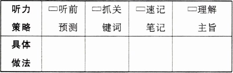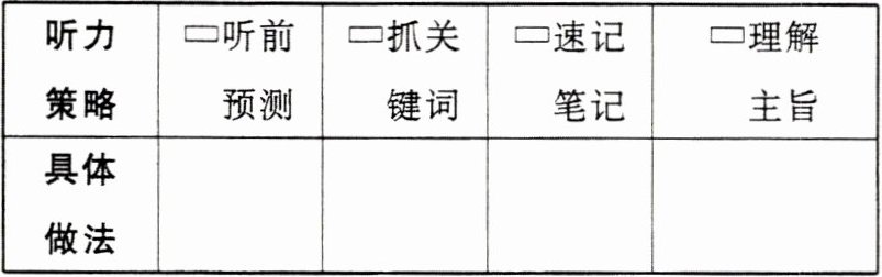 |具体做法|根据题目、选项等信息,预测听力材料可能涉及的话题和内容|在听的过程中,留意表示人、事、地、时间、数字等的关键词|用简单的符号、缩写等形式快速记录重要信息|听完之后,总结听力材料主要讨论的内容和核心意思|