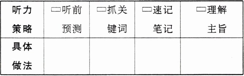 | 听力策略 | 听前预测 | 抓关键词 | 速记笔记 | 理解主旨 |