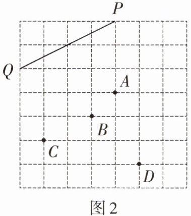 5. 如图 2,在正方形网格内,线段 $ PQ $ 的两个端点都在格点上,网格内另有 $ A,B,C,D $ 四个格点,下面四个结论中,正确的是( )