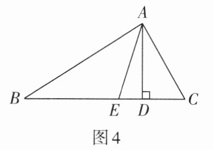 5. 如图 4,已知 $ AE $ 是 $ \triangle ABC $ 的角平分线, $ AD $ 是 $ BC $ 边上的高,若 $ \angle B = 25^{\circ} $, $ \angle C = 65^{\circ} $,则 $ \angle DAE $ 的大小是( )