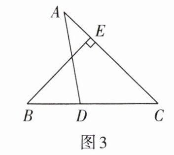4. 如图 3,在 $ \angle ACB $ 中,过点 $ B $ 作 $ BE \perp AC $ 于点 $ E $, $ D $ 为 $ BC $ 边上一点,连接 $ AD $,已知 $ \angle A = 36^{\circ} $, $ \angle ADC = 100^{\circ} $,则 $ \angle B $ 的度数为( )
