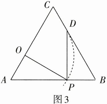 8. 如图3,在等边三角形ABC中,$AC= 9$,点O在AC上,且$AO= 3$,点P是AB上一动点,连接OP,以O为圆心,OP长为半径画弧,交BC于点D,连接PD,如果$PO= PD$,那么AP的长是(