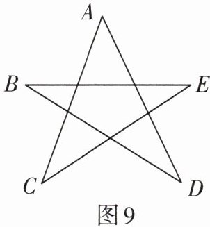 1. 如图9是一个五角星图案,求∠A+∠B+∠C+∠D+∠E的和.
