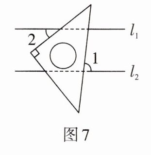 4. 如图$7,l_1//l_2,$一个含45°角的直角三角板按如图所示放置,∠1= 85°,则∠2= _________.