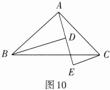 2. 如图10,$A$,$D$,$E$三点在同一条直线上,且$\triangle BAD\cong\triangle ACE$,