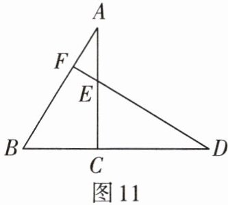 3. 如图11,$\triangle ABC\cong\triangle DEC$,$BC= 2$,$CD= 3$,点$B$,$C$,$D$在同一直线上,点$E在AC$上,延长$DE交AB于点F$。