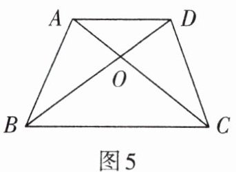 1. 如图5,$BD$,$AC相交于点O$,若$OA = OD$,用“SAS”说明$\triangle AOB\cong\triangle DOC$,还需添上条件______.