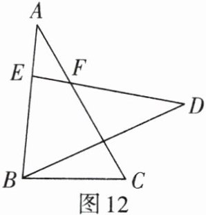 4. 如图12,已知$\triangle ABC\cong\triangle DEB$,点$E在AB$上,$DE与AC相交于点F$。