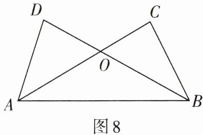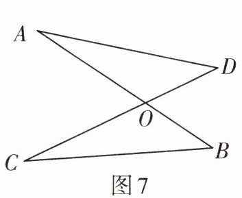 3. 如图7,$AB与CD交于点O$,$OA = OC$,$OD = OB$,$\angle AOD = $______,根据______可得到$\triangle AOD\cong\triangle COB$,从而可以得到$AD = $______.