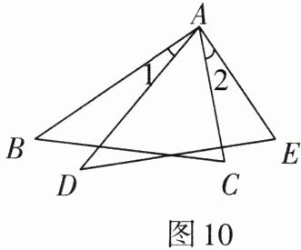 2. 如图10,$AB = AD$,$AC = AE$,$\angle 1 = \angle 2$. 求证:$BC = DE$.
