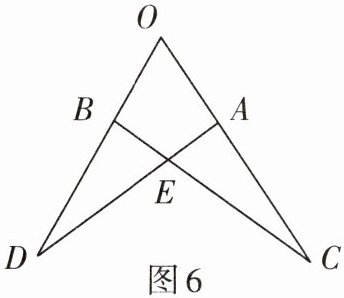 2. 如图6,若$OA = OB$,$OC = OD$,$\angle O = 60^{\circ}$,$\angle C = 25^{\circ}$,则$\angle OAD = $______.