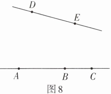 3. 如图 8,以点 $ A,B,C,D,E $ 中的任意 3 点为顶点的三角形共有几个?请在图中画出这些三角形。