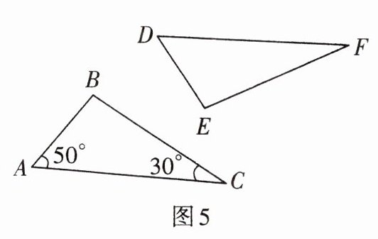 1. 如图 5,若$AB = DE$,$AC = DF$,$BC = EF$,则$\angle E = $______.