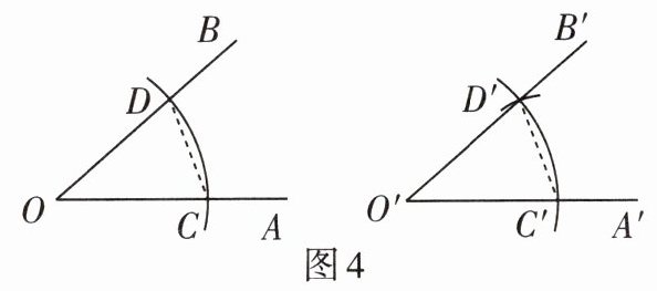 ④过点D'作射线O'B',则∠A'O'B'=∠AOB.