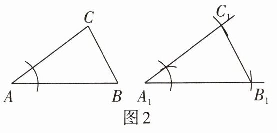 4. 如图2,已知△ABC,小慧同学利用尺规作出△A₁B₁C₁与△ABC全等,根据作图痕迹请判断小慧同学的全等判定依据是(