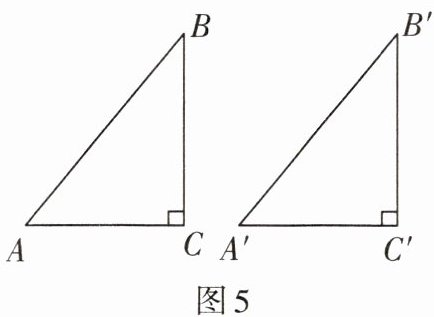 2. 如图5,∠C= ∠C'= 90°,欲判定△ABC≌△A'B'C',可添加条件AC= A'C'和______(添上一个条件即可).