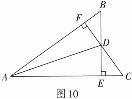 1. 如图10,已知$BE\perp AC于E$,$CF\perp AB于F$,$BE$,$CF相交于点D$,且$BD = CD$.求证:$AD平分\angle BAC$.