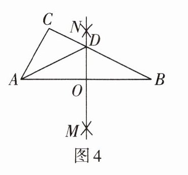 5. 如图4,在△ABC中,分别以点A,B为圆心,大于$\frac{1}{2}AB$的长为半径作弧,两弧相交于点M,N,作直线MN交BC于点D,交AB于点O,连接AD。若△ABC的周长比△ADC的周长大14,则AO的长为( )