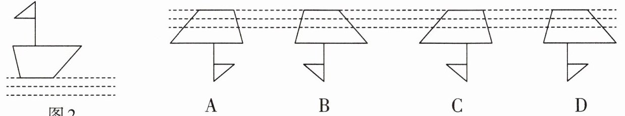 3. 图2是一只停泊在平静水面上的小船,它的“倒影”应是下列图形中的( )