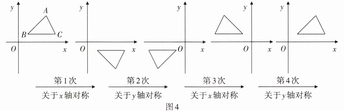 4. 如图4,在平面直角坐标系中,对$\triangle ABC$进行循环往复的轴对称变换,若原来点$A的坐标是(2,3)$,则经过第$2025次变换后所得的A$点坐标是______.