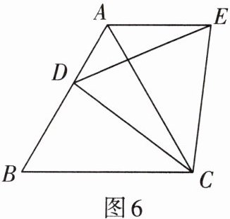 2. 如图6,$D是等边三角形ABC的边AB$上的一个动点,以$CD为一边向上做等边三角形EDC$,连接$AE$,试找出图中的一组全等三角形,并说明理由.