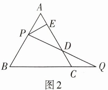 4. 如图2,$\triangle ABC是边长为2$的等边三角形,点$P在AB$上,过点$P作PE\bot AC$,垂足为$E$,延长$BC到点Q$,使$CQ = PA$,连接$PQ交AC于点D$,则$DE$的长为( )