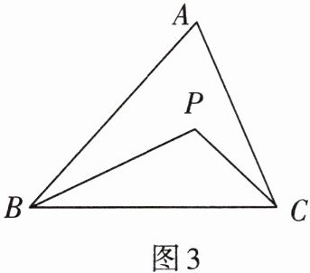 5. 如图3,$P是\triangle ABC$内一点。请想一个办法说明:$AB + AC>PB + PC$。(提示:延长$BP交AC于点D$。)