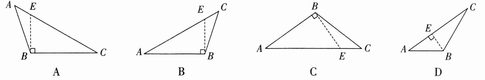 3. 下列四个图形中,线段 $ BE $ 是 $ \triangle ABC $ 的高的是( )