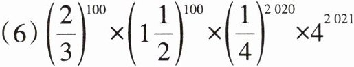 (6)$(\dfrac{2}{3})^{100}×(1\dfrac{1}{2})^{100}×(\dfrac{1}{4})^{2020}×4^{2021}$