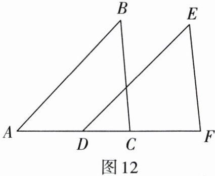 1. 如图12,已知AB//DE,BC//EF,D,C在AF上,且AD= CF,求证:△ABC≌△DEF.