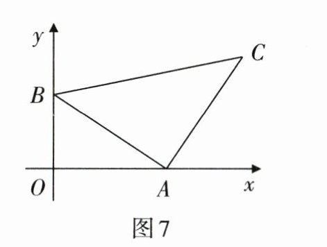 7. 如图7,将一块等腰直角三角板ABC放置在平面直角坐标系中,其直角顶点A落在x轴上,点B落在y轴上,点C落在第一象限内,已知点A(3,0),点B(0,2),则点C的坐标为(