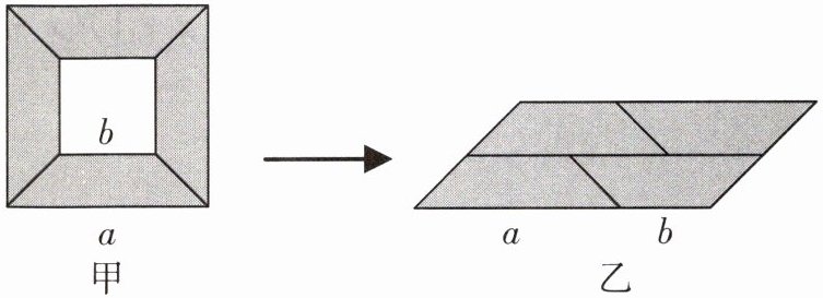 4. 从边长为$a的大正方形纸板挖去一个边长为b$的小正方形纸板后,将其裁成四个相同的等腰梯形(如图甲),然后拼成一个平行四边形(如图乙),那么通过计算两个图形阴影部分的面积,可以验证成立的公式为( )