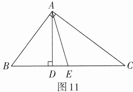 3. 如图 11,已知 $ AD $,$ AE $ 分别是 $ \triangle ABC $ 的边 $ BC $ 上的高和中线,$ AB = 12 cm $,$ AC = 16 cm $,$ BC = 20 cm $,$ \angle BAC = 90° $.