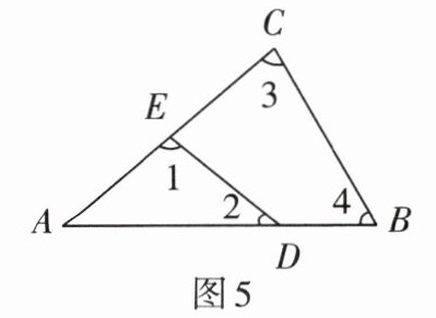3. 如图5,$\angle A = 35^{\circ}$,则$\angle 1 + \angle 2 + \angle 3 + \angle 4 = $______。