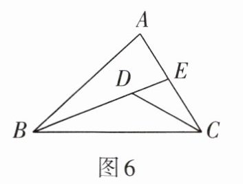 4. 如图6,在$\triangle ABC$中,点$D是\angle ACB与\angle ABC$的角平分线的交点,$BD的延长线交AC于点E$,且$\angle EDC = 50^{\circ}$,则$\angle A$的度数为______。