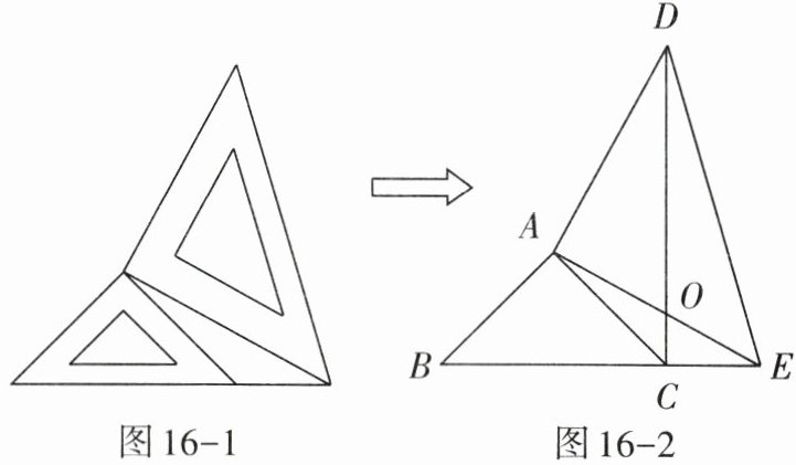 6. 两个大小不同的等腰直角三角板如图16-1所示放置,图16-2是由它抽象出的几何图形,点B,C,E在同一条直线上,连接DC.