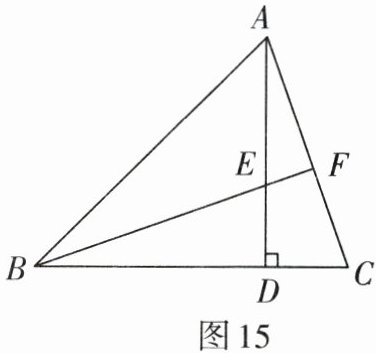 5. 如图15,在△ABC中,AD⊥BC于点D,AD= BD,E是AD上的一点,且DC= DE,连接BE并延长交AC于点F.