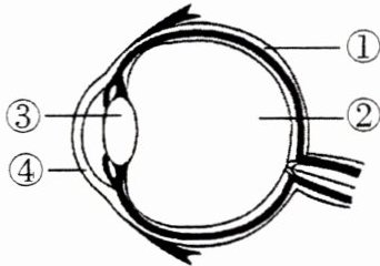 2. 如图是眼球的结构示意图。课堂上,既能看清远处黑板上的板书,又能看清近处书本上的文字。在此过程中,眼球中起主要调节作用的是(
