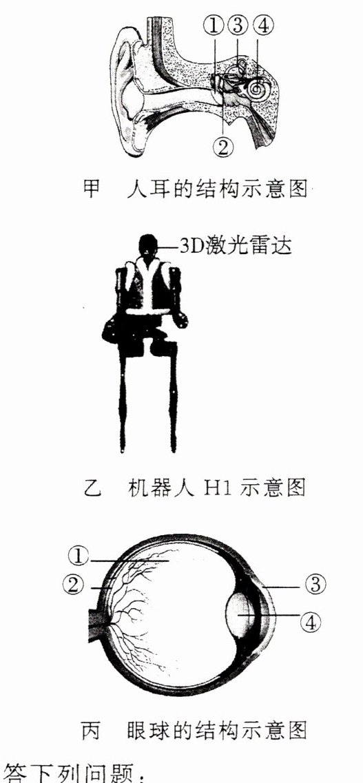 (4)机器人H1通过3D激光雷达、摄像头等传感器获取环境数据“看到”演员,实时感知演员的位置,这个3D激光雷达相当于眼球结构(如图丙)中的[②](填结构名称)接收视觉信息。